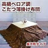 長方形省スペース型こたつ布団(薄掛け布団+敷き布団セット) 「ルーチェ」 サイズ:180×220cm カラー:ブラウン(#5820219) 価格: 7,980円 レビュー評価: レビュー数: サイズ: 掛布団)180×220cm 敷布団)145X170cm ※こたつ台 (75〜80)X(105〜120)cmに適応します。 組成: 掛布団)表地:ポリエステル 100% 裏地:(天板部)ポリエステル (垂れ部)ポリエステル100% 中材:ポリエステル 100% 敷布団)表地:ポリエステル 100% 裏地:ポリエステル 100% 中材:ポリエステル100%・ウレタンフォーム 6mm 場所を取らない省スペースタイプの掛け敷きふとん。ふんわり肌触りの良いフリース素材です。部分暖房のコタツは電気代もおトクです。こたつ掛布団の交換で秋冬の模様替えにも最適です。こたつ布団で家族団欒(だんらん) |